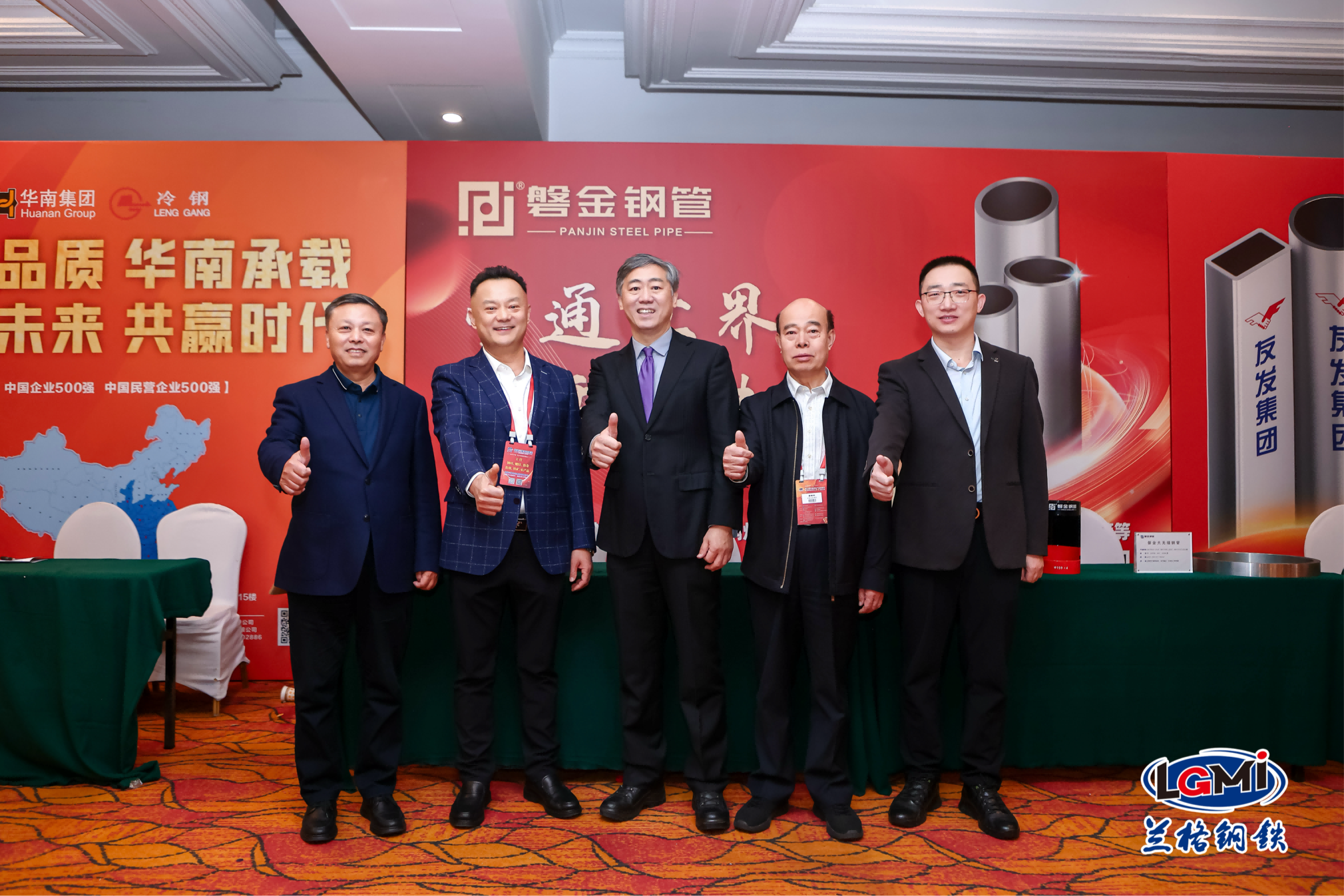 峰会现场,傅士刚董事长与兰格集团董事长刘长庆,著名经济学家、清华大学中国经济思想与实践研究院院长李稻葵,全联冶金商会秘书长贾银松展开深度对话;座谈结束后,在傅士刚董事长的陪同下,专程参观磐金钢管展台,详细了解油套管、冷拔管、管线管、大无缝产品等各类展品的技术参数与竞争优势,对磐金钢管在无缝钢管领域的技术突破与产业成就给予了高度评价。此次交流与考察,不仅展现了磐金钢管的技术硬实力,更搭建了企业与行业权威、专家深度对接的桥梁,为后续发展凝聚了广泛共识。